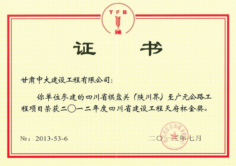 四川省建筑工程天府杯金奖